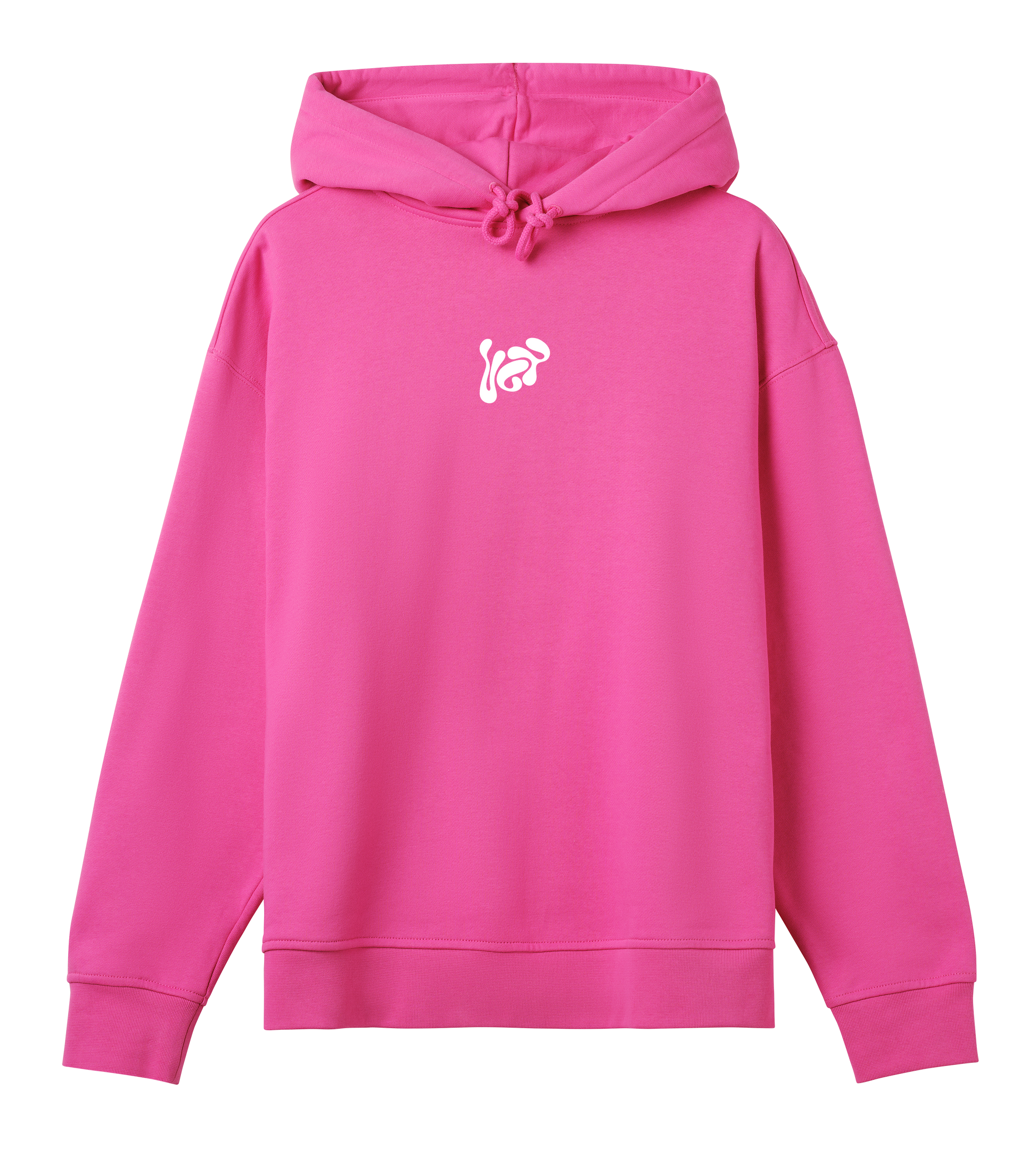 A Womens Oversized Hoodie with an oversized, boxy cut. Made from a heavy 83% organic cotton and 17% recycled polyester, with a dry hand feel, it features dropped shoulders plus chunky and exaggerated ribbing throughout, for enhanced structure. The hoodie has felled shoulder seams, with inside neck tape, and twin needle straddle stitching that runs around all its ribbing. It also has a double shell hood with flatlock seam running through the middle, with heavy cord drawstrings and double shell 'half moon' detail on the inside neck. Sizing from XS to XL in three colours, including an eye-popping hyper pink.